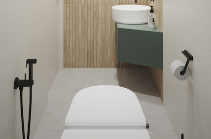 - Аксессуары: Практичные элементы для завершения образа санузла.